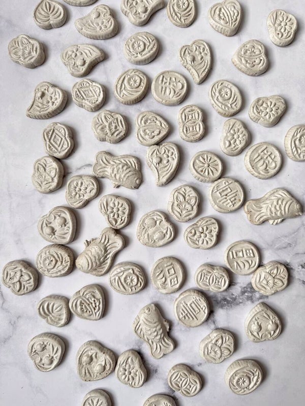 - Couleurs et Finitions : ces worry stone sont modelées telles de petits bonbons Vietnamiens que l'on mange au Têt (Jour de l'an chinois) et emballés dans des pettes poches en jutes