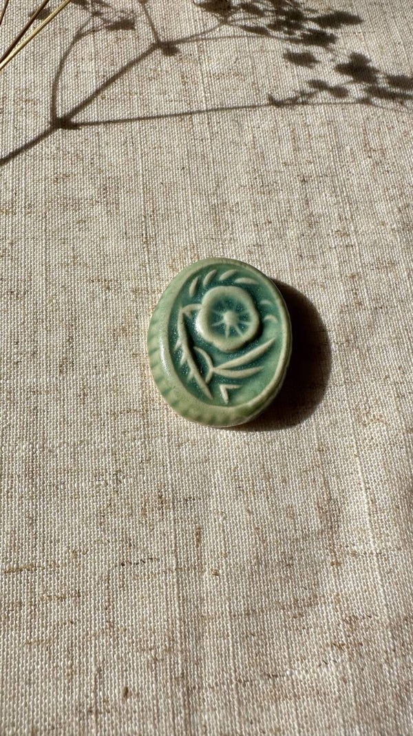 Fruit d'un travail artisanal, chaque pierre est unique, l'émail comme le motif varie d'une pierre à l'autre.